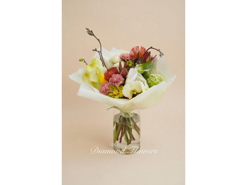 Elegantní exotická kytice zaujme svou jedinečnou kombinací neobvyklých květů a výrazných barev. Orchideje a exotické prvky dodávají aranžmá luxusní a moderní charakter. Ideální volba pro ty, kteří chtějí darovat něco originálního a nezapomenutelného.