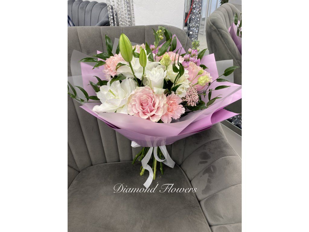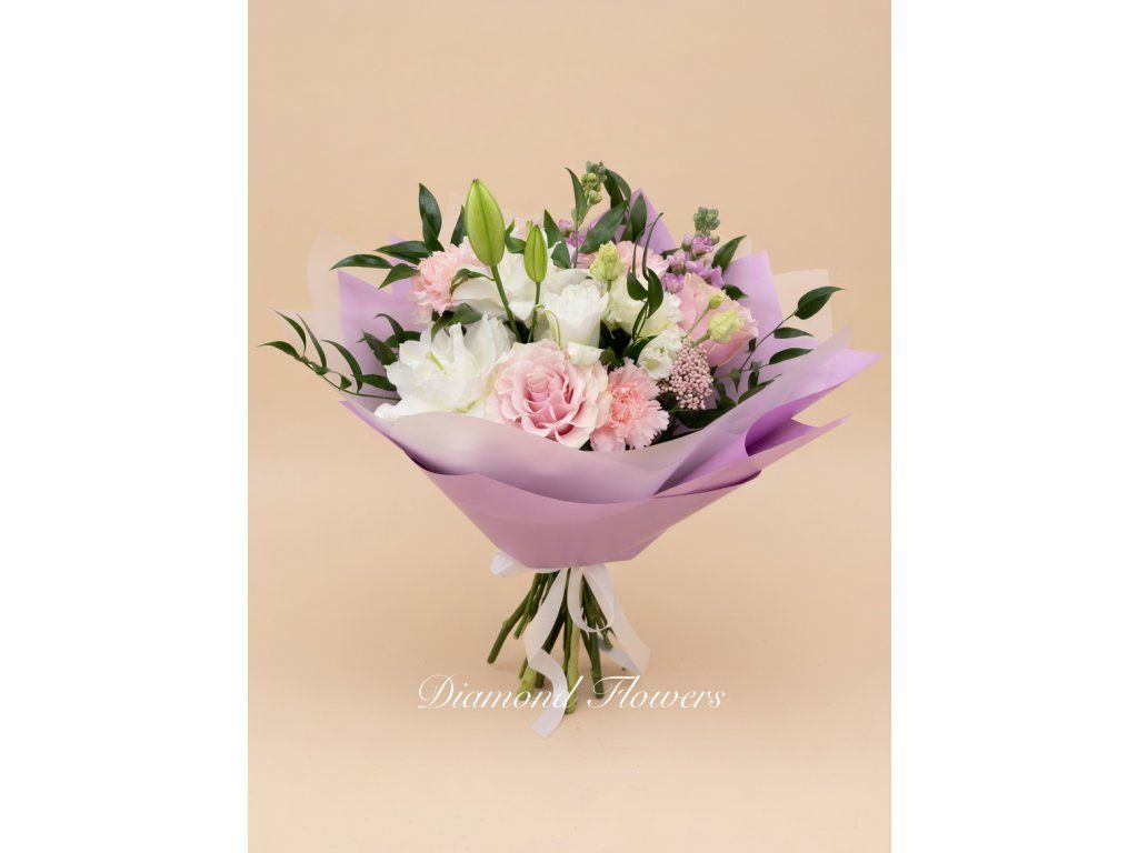 Kytice lilie a růže okouzlí jemnou kombinací elegantních květů a pastelových odstínů. Bílé lilie dodávají kompozici noblesu, zatímco růže přinášejí něžnost a romantiku. Ideální dárek pro výjimečné chvíle plné krásy a harmonie.