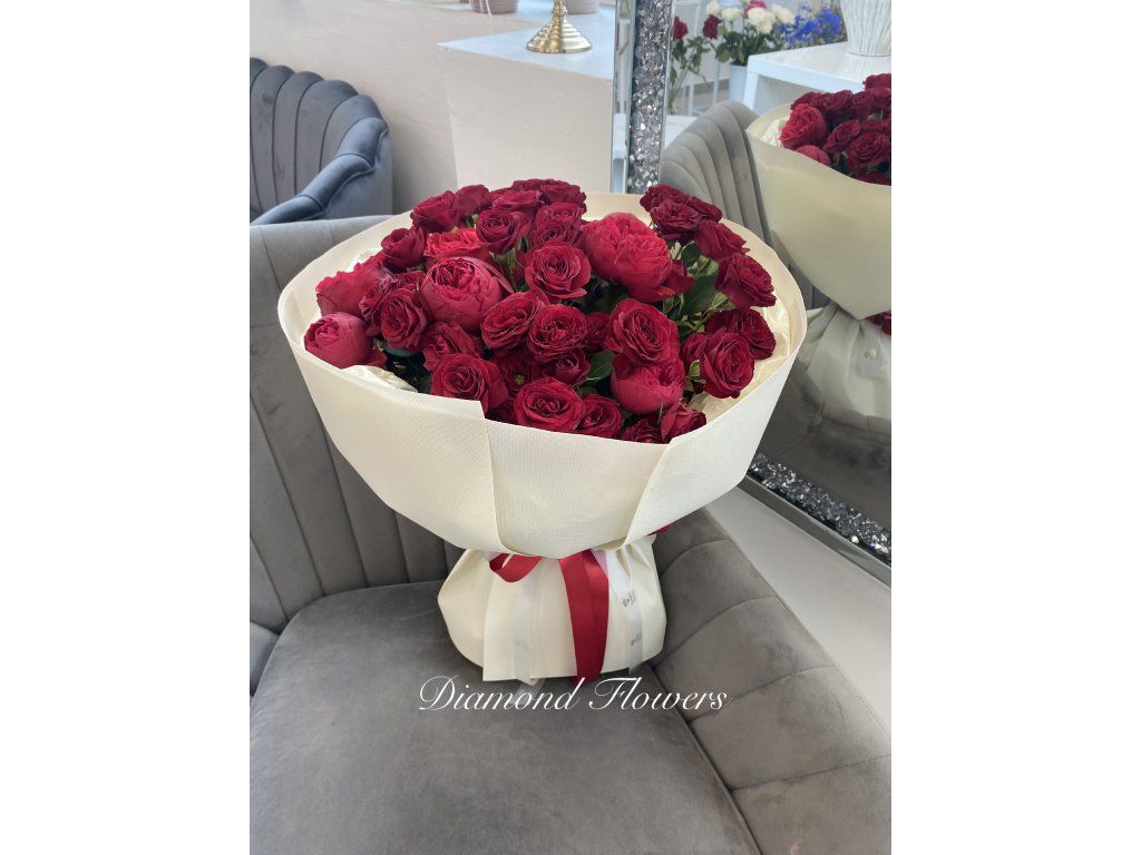 Krásná kytice z trsových růží (15 kusů), která okouzlí svou plností a bohatými květy. Elegantní balení podtrhuje luxusní vzhled a činí ji ideálním dárkem pro výjimečné příležitosti. Vyjadřuje lásku, vášeň a upřímné emoce.